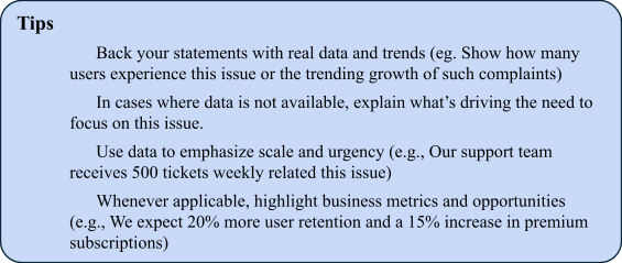 This framework can be applied to feature kickoffs, product requirement documents (PRDs), user stories, or even smaller tasks. It can be used when developing new features or improving current ones. Let’s dive into each piece.