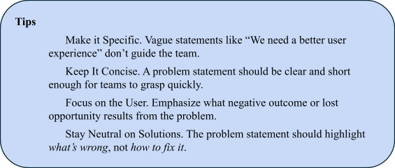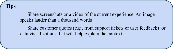 I use a simple, five-step storytelling framework to define problems. However, there’s a trick: I skip the happy ending. The solution is deliberately left out so that the engineers and designers have the freedom to propose how to achieve the resolution.
