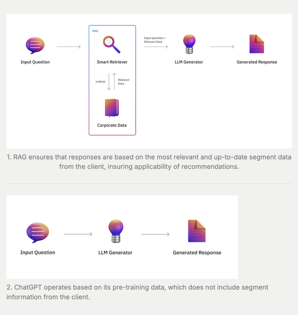 Our GenAI solution leverages Retrieval-Augmented Generation (RAG) to enhance media planning. This approach provides more accurate and contextually rich suggestions compared to basic LLM-based methods.