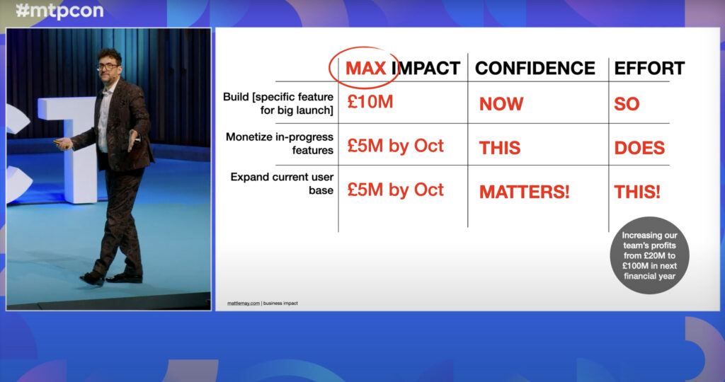 At #mtpcon London 2025, Matt LeMay, a veteran product leader and coach with a wealth of experience across major tech companies, captivated the audience with a talk about the importance of aligning product work with business impact.